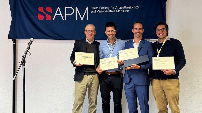 Wir blicken auf ein äusserst erfolgreiches Jahr 2025 zurück. Die Swiss Society for Anaesthesiology and Perioperative Medicine (SSAPM) hat an ihrem letzten Jahreskongress Swiss Anaesthesia am 6. - 8. November 2025 in Lausanne wissenschaftliche Projekte unserer Klinik mit Preisen ausgezeichnet. Wir gratulieren den ausgezeichneten Wissenschaftlern unserer Klinik für die zahlreichen erfolgreichen Eingaben.